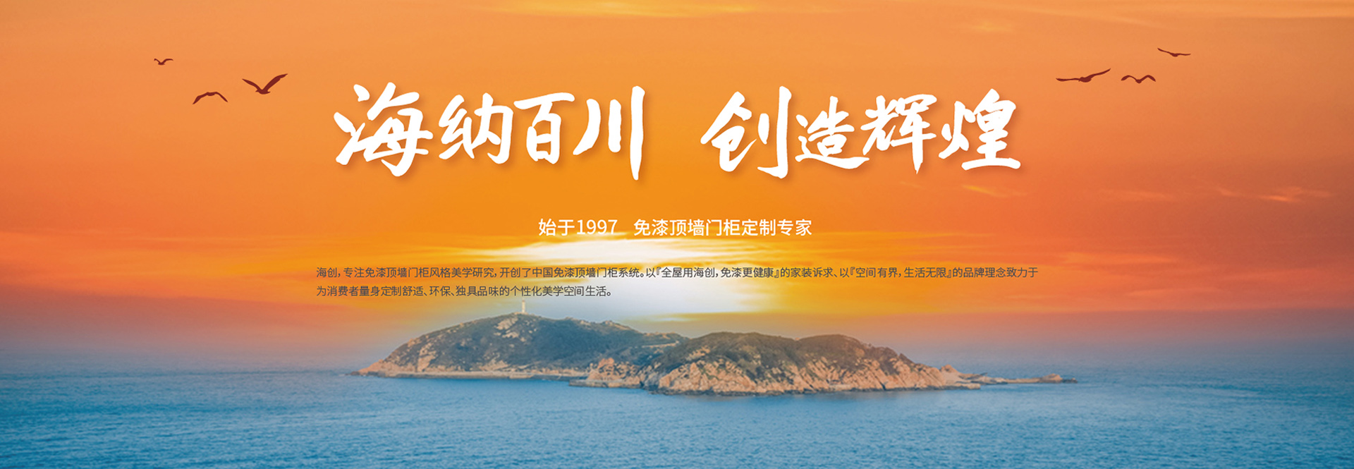 海創(chuàng),專注免漆頂墻門(mén)柜風(fēng)格美學(xué)研究,開(kāi)創(chuàng)了中國(guó)免漆頂墻門(mén)柜系統(tǒng)。以『全屋用海創(chuàng),免漆更健康』的家裝訴求、以『空間有界,生活無(wú)限』的品牌理念致力于為消費(fèi)者量身定制舒適、環(huán)保、獨(dú)具品味的個(gè)性化美學(xué)空間生活。